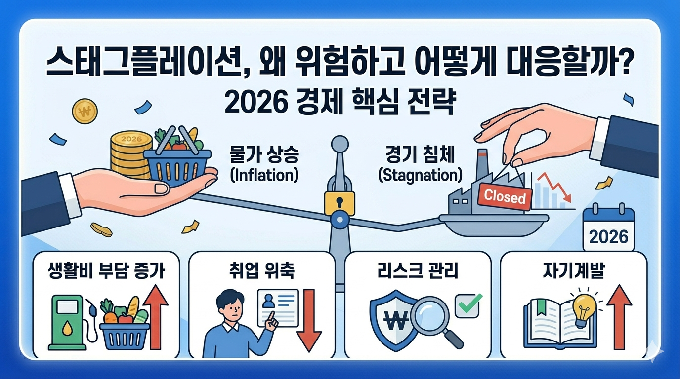 최근 경제 뉴스에서 ‘스태그플레이션’이라는 용어가 자주 등장하고 있습니다. 다소 어렵게 느껴질 수 있지만, 이 개념을 이해하면 현재 경제 상황을 훨씬 명확하게 볼 수 있습니다. 특히 2026년처럼 물가 상승과 경기 둔화가 동시에 언급되는 시기에는 반드시 알아야 할 핵심 개념입니다.